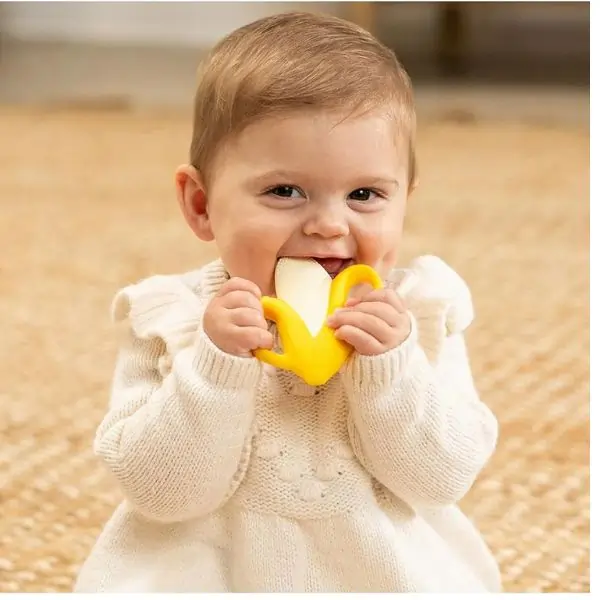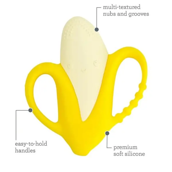 The Infantino Lil' Nibbles Banana Silicone Baby Teether offers fun and comfort for your baby’s teething stage. Its playful banana shape encourages sensory exploration while providing gentle relief to sore gums. The soft, textured silicone surface massages tender gums, and the easy-to-grip handles make it perfect for little hands. Made from BPA-free, food-grade silicone, it is safe, durable, and ideal for daily use at home or on the go.
