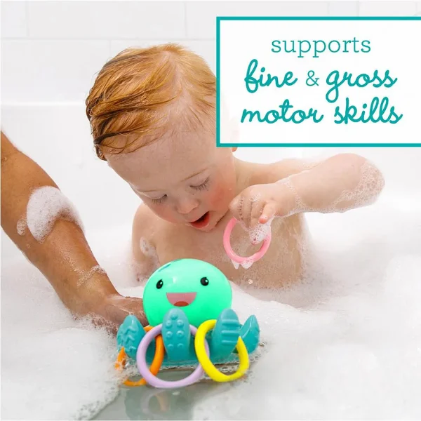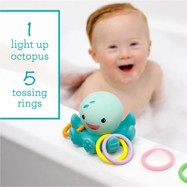 Catch the glow with the Infantino Light Up Ring Catcher—an illuminating octopus toy for 0 months+ that lights up when shaken or tapped, encouraging tactile exploration and sensory play. Toss the 4 colorful soft plastic rings onto the octopus arms to hear fun sounds and see motion-activated lights. Perfect size (12 x 10 cm) for little hands, it promotes hand-eye coordination and cause-and-effect learning. Non-toxic plastic is safe and durable; easy to clean. EN certified for safety. Ideal for UAE tummy time or travel. Ships in 2 days via YallaBuyIt.ae.