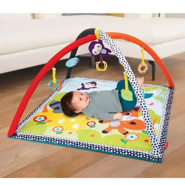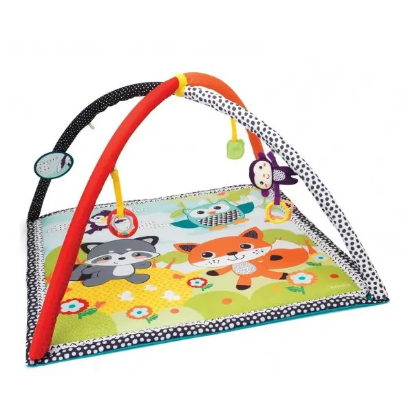 The Infantino Safari Twist & Fold Activity Gym is designed to keep infants 0 Months+ engaged and active. With a foldable design, tummy time bolster, mirror, and plush toys, it encourages sensory development, motor skills, and exploration. Perfect for safe play at home or on the go.