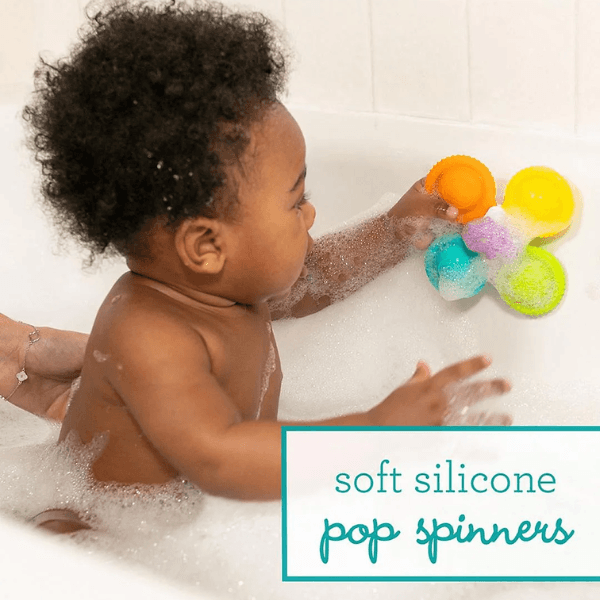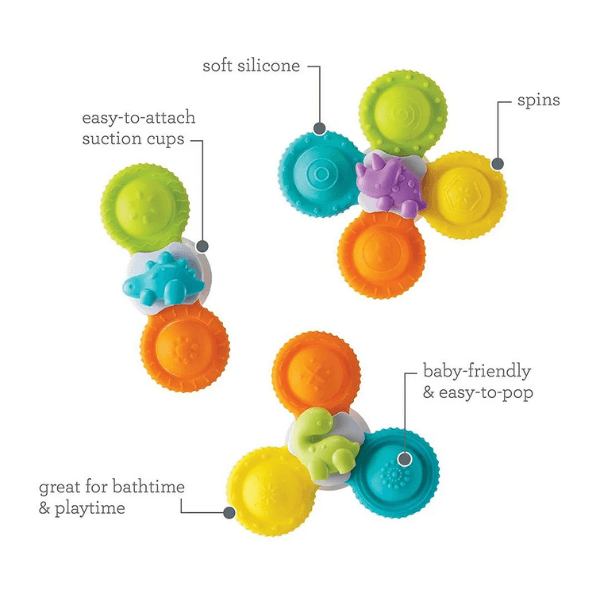 Roar into bath time with the Infantino Silicone Bath Pop Spinners—3 colorful dinosaur spinners that stick to tub walls with suction cups and spin with a gentle push for 6 months+. Made from 100% food-grade silicone, they’re safe for teething, mold-resistant, and quick-drying. Encourages hand-eye coordination and sensory exploration. EN certified for safety, dishwasher-safe. Perfect for UAE splashy fun. Ships in 2 days via YallaBuyIt.ae.