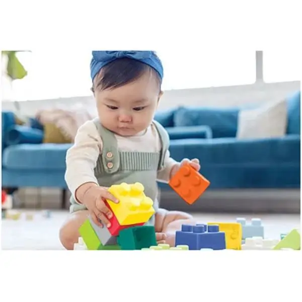 The Infantino Super Soft First Building Blocks set includes 12 colorful, soft, and safe blocks designed for infants 0 months and older. Perfect for sensory exploration, hand-eye coordination, and fine motor skill development, these lightweight blocks are ideal for stacking, sorting, and grasping. Made from non-toxic, baby-safe materials, they are easy for tiny hands to hold and explore while providing endless developmental fun.