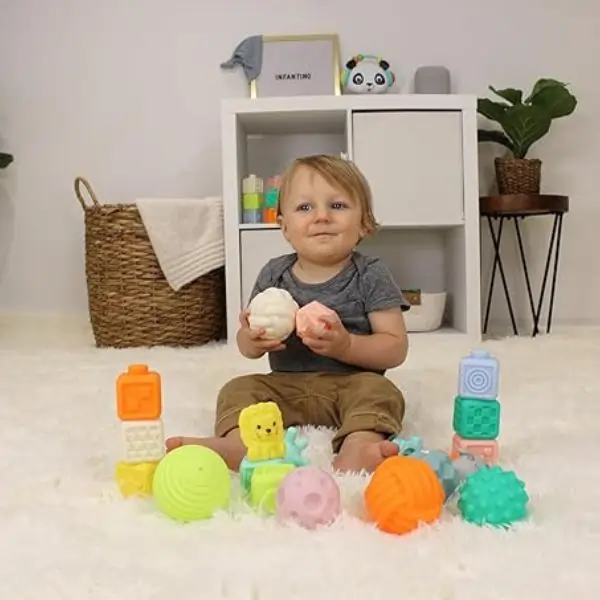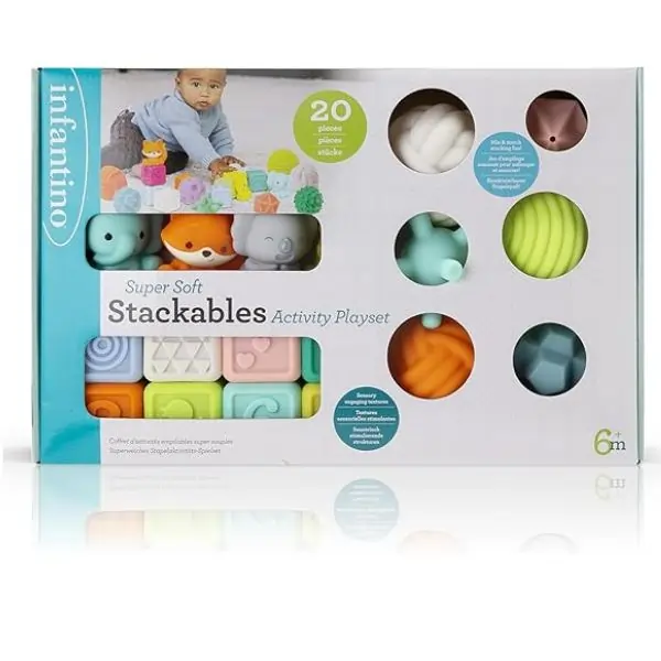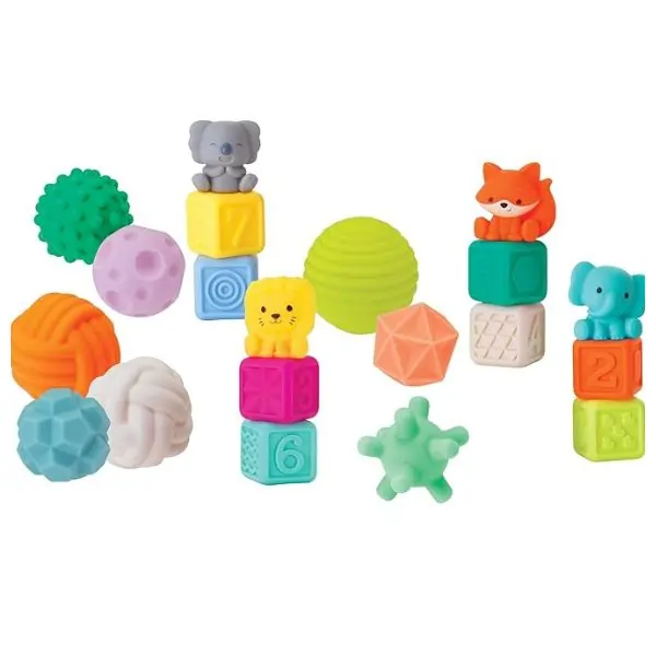 20-piece activity playset with soft stackable blocks, sensory balls & animal buddies