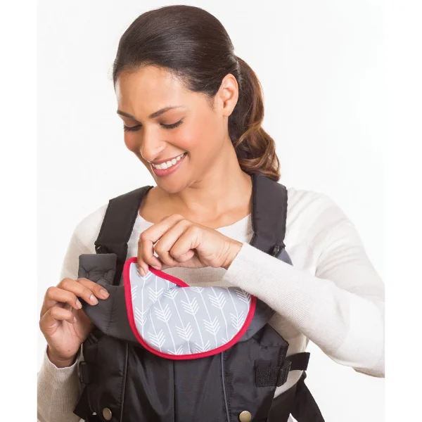 Carry baby close with the Infantino Swift 2-Way Carrier in Black—an ergonomic carrier for 0+ months (3.6-9 kg) that supports front-inward and front-outward positions. The included Wonder Cover™ bib protects clothes from drool and spit-up, while the front pocket stores essentials. Adjustable padded straps and waist belt ensure parent comfort; breathable mesh keeps baby cool in UAE heat. Hip-healthy design, machine-washable, and folds compact for travel. EN certified for safety. Perfect for hands-free bonding. Ships in 2 days via YallaBuyIt.ae.