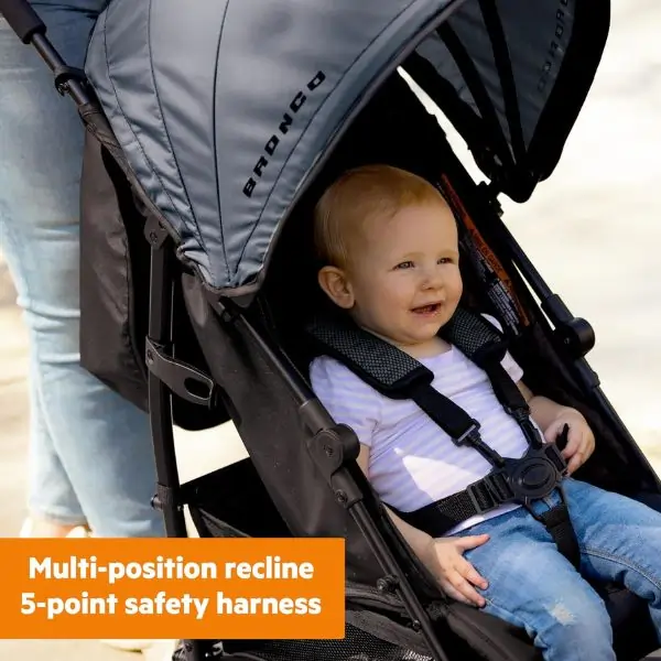 The Ingenuity Ford Bronco HighGear Lightweight Convenience Stroller is a stylish and compact stroller designed for babies and toddlers. Perfect for travel, outings, and everyday use, this stroller features a lightweight frame, easy one-hand fold, and adjustable recline for maximum comfort. Its durable wheels and smooth maneuverability make it ideal for city streets, parks, or vacations. Safety features include a 5-point harness and a secure canopy, while the storage basket adds convenience for parents on the go.