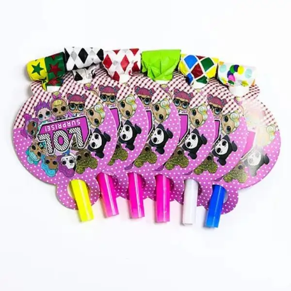 Children love party blowers, such a fun way to make lots of noise! These blowers come in vibrant colors with attractive designs. The pack includes 6 party blowers. Just blow through the end to produce a festive sound.