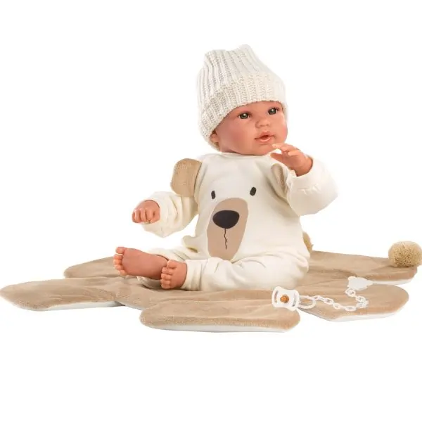 Experience lifelike play with the Llorens Newborn Crying Doll 36cm — a beautifully crafted RN-style baby doll with a soft cuddly body and realistic details. Press the tummy to hear gentle crying sounds, then use the pacifier to soothe the doll just like a real newborn. Dressed in a cozy brown bear outfit, this doll is perfect for imaginative play, emotional development, and display. Handmade in Spain by Llorens, the doll features premium materials, a soft vinyl face and limbs, and careful finishing for long-lasting quality and safety.