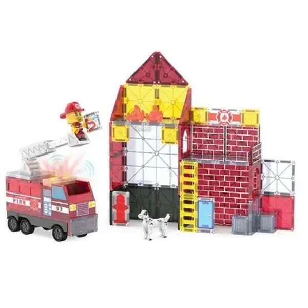 50-Piece deluxe fire-station-themed magnetic set