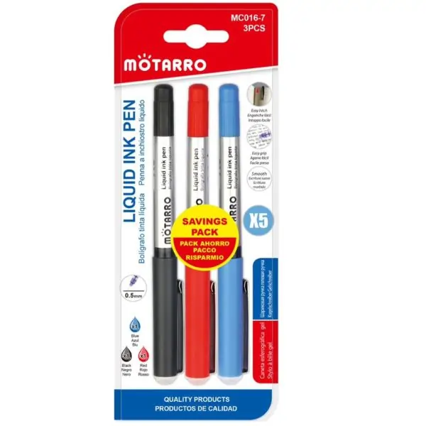 The MOTARRO Gel Ink Pen MC016-7 is a reliable liquid ink writing pen designed for smooth, consistent performance. With clean ink flow and comfortable handling, it delivers neat writing for everyday tasks such as note-taking, office work, journaling, and school assignments. Ideal for students and professionals, this gel ink pen provides a comfortable writing experience with clear, sharp lines. A practical stationery essential for home, school, and office use.