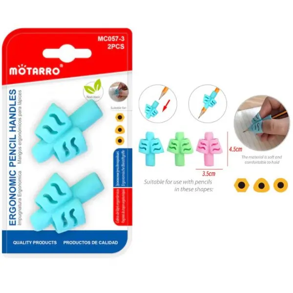 MOTARRO Pencil Handles MC057-3. This ergonomic pencil grip set is designed to support better handwriting posture and reduce finger strain during long writing or drawing sessions. Ideal for kids learning to write and adults needing extra comfort, these pencil handles provide a secure, non-slip hold for pencils and similar stationery tools. Perfect for school, office, and home use, they help make writing smoother, easier, and more controlled.