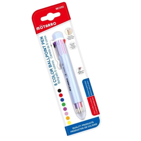MOTARRO 8 Color Ballpoint Pen 0.7mm – Multi-Color Retractable Pen for Smooth Writing, Note Taking & Highlighting – School, Office & Home Stationery