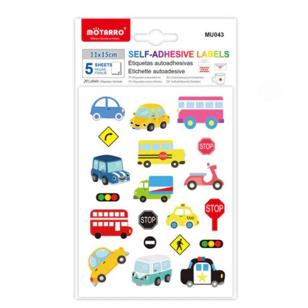 The MOTARRO Adhesive Labels MU043 are fun and colorful car-shaped sticker labels designed to engage kids while supporting learning and creativity. Perfect for school activities, craft projects, reward systems, and playful decoration, these stickers make tasks more enjoyable for children. With a self-adhesive backing, the stickers are easy to peel and stick onto notebooks, worksheets, folders, charts, and craft projects. Ideal for teachers, parents, and students, these decorative labels encourage participation, motivation, and creative expression.