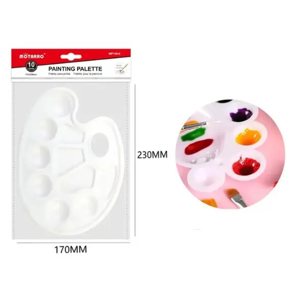 The MOTARRO Painting Plate MP145-8 is a practical and durable paint mixing palette designed for artists, students, and hobbyists. Suitable for acrylic, oil, and watercolor paints, it provides a smooth surface for mixing colors with ease and precision. Lightweight and easy to handle, this painting plate is ideal for art classes, studios, workshops, and home use. Its durable construction ensures long-term use, making it a reliable tool for beginners and experienced artists alike.