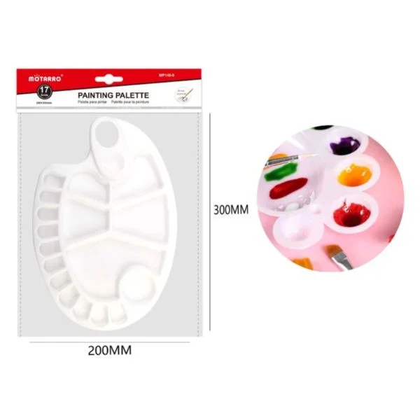 Mix colors easily and keep your workspace organized with the MOTARRO Painting Plate MP145-9. This durable paint palette is designed for smooth color blending and controlled paint use across acrylic, oil, and watercolor mediums. Whether you're painting on canvas, paper, or craft surfaces, the strong build and practical layout make it a reliable choice for artists, students, and hobbyists. Perfect for art classes, home DIY projects, and studio work, this palette helps you prepare multiple shades quickly with less mess.