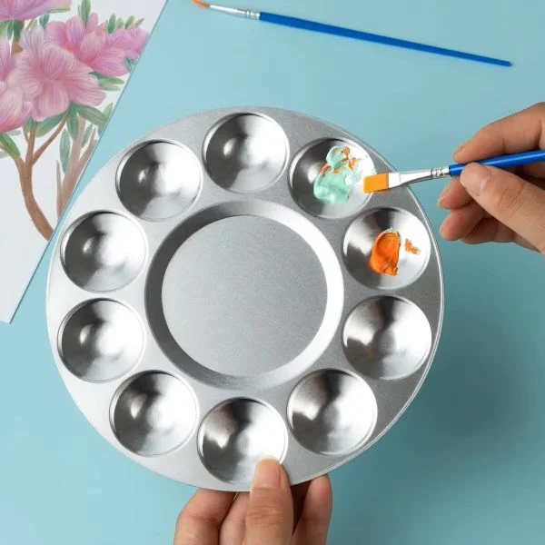 10-Grid Design: The palette features 10 circular wells for separating and mixing different paint colors. This structure helps keep colors organized and prevents cross-contamination during the painting process.