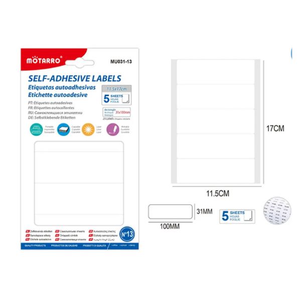 MOTARRO Self-Adhesive Labels MU031-13 – Writable, Waterproof Sticker Labels for Organizing, Filing, Packaging & Jar Labeling – Easy Peel & Stick for Home, Office, School Use
