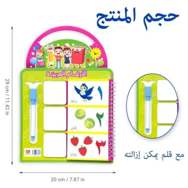 Arabic Learning-Friendly – Designed to help young learners practice Arabic letters, writing skills, and early learning concepts.