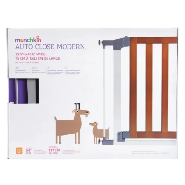 Childproof your home with the Munchkin Auto Close Metal Gate SKU:11442—a pressure-mounted gate with auto-closing hinge that swings shut automatically for added safety, suitable for 6-24 months. The sleek dark wood and silver metal design blends with modern decor, measuring 29.5-40.6 inches wide and 29 inches tall (extensions available up to 54 inches). Easy one-handed adult opening with pull-and-lift handle. EN certified for safety, no drilling required for pressure fit. Perfect for UAE doorways or stairs. Ships in 2 days via YallaBuyIt.ae. Key Specifications: