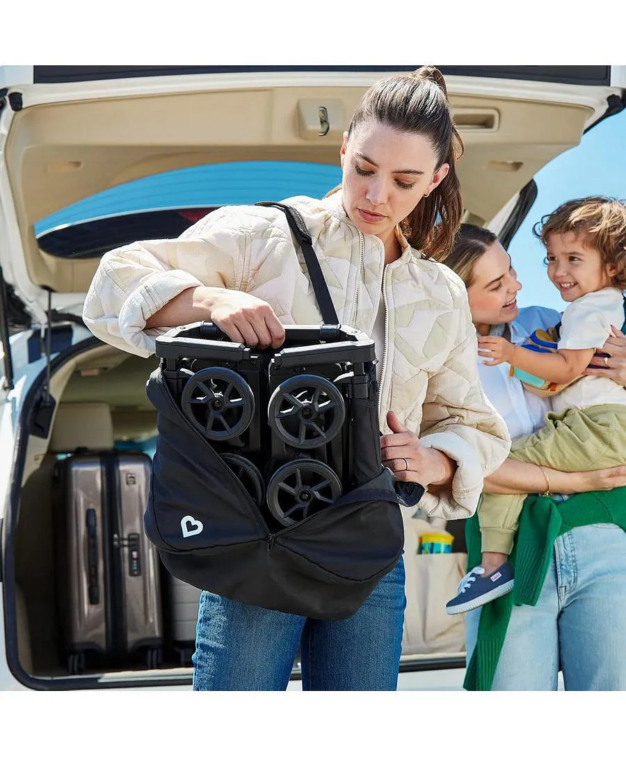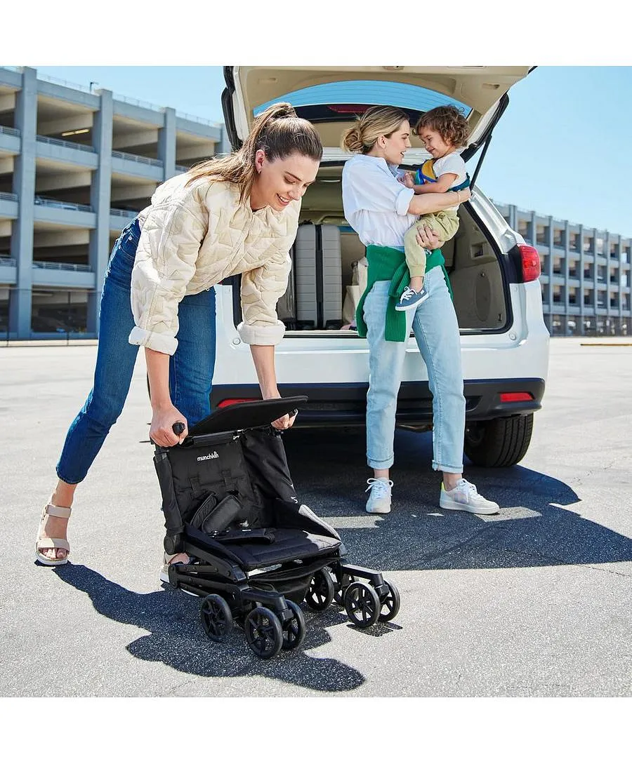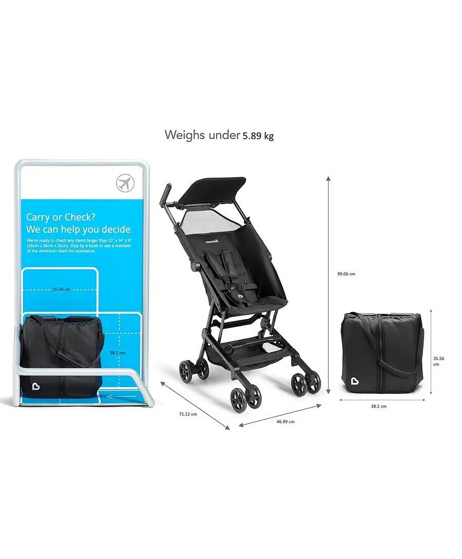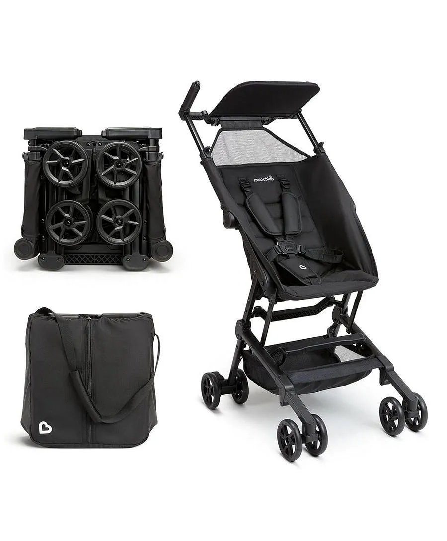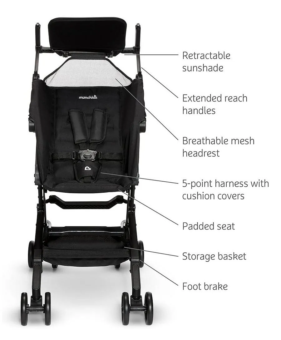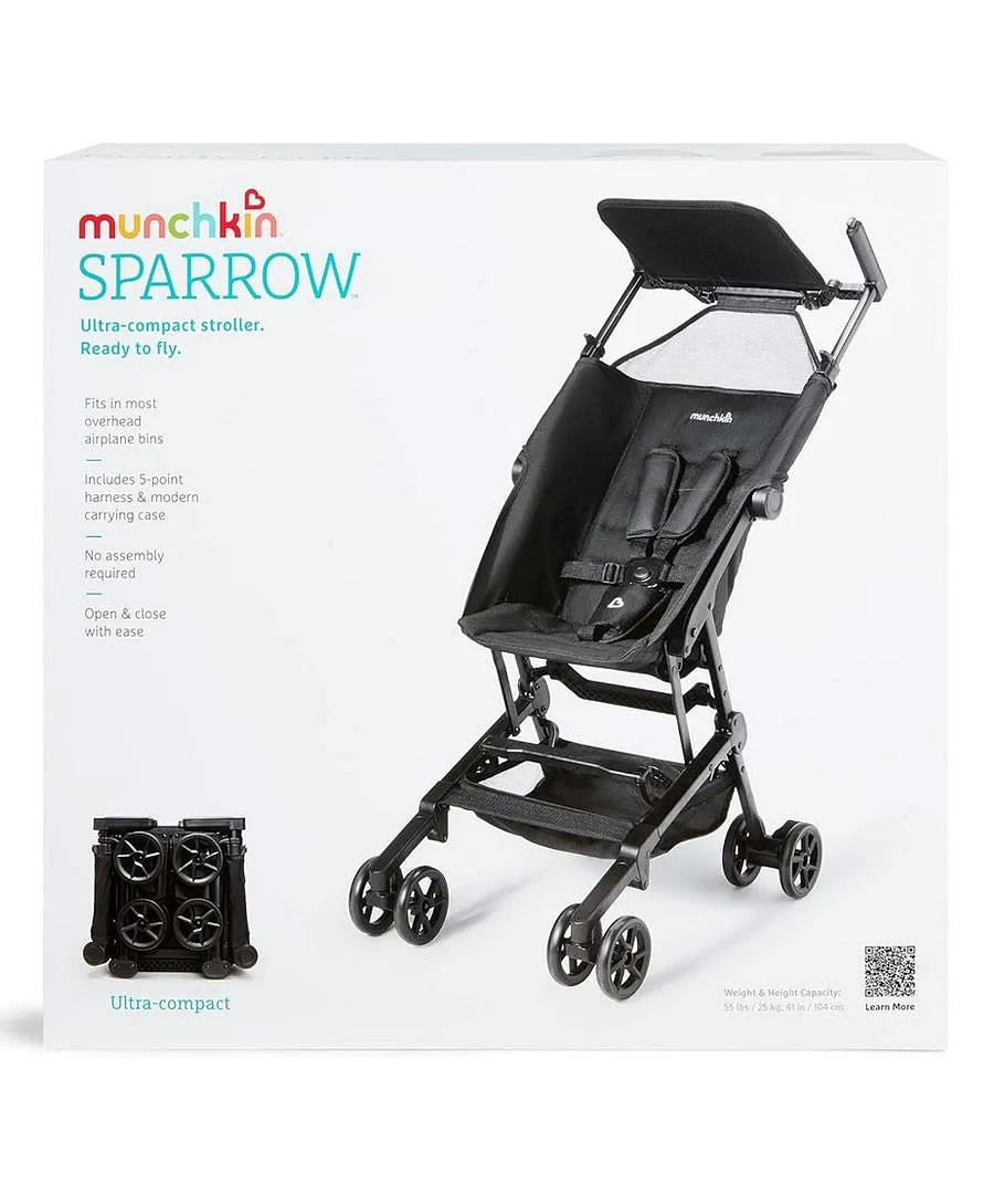 Travel light with the Munchkin Sparrow Ultra Compact Stroller in Black—a lightweight (12.8 lbs) foldable wonder for babies 6 months+ (up to 55 lbs/25 kg). The ultra-compact design (folds to 38.1x35.56x15.88 cm) fits most airplane overhead bins, with no assembly required—just unfold and go. Features a 5-point adjustable harness for safety, adjustable handles for all heights, mesh headrest/sun shade for breathability in UAE heat, and a storage basket for essentials. One-hand fold and included carry bag make it perfect for errands or vacations. EN certified for security, with all-wheel suspension for smooth rides. Open dimensions: 71.12 x 46.99 x 99.06 cm. Ships in 2 days via YallaBuyIt.ae. Key Specifications: