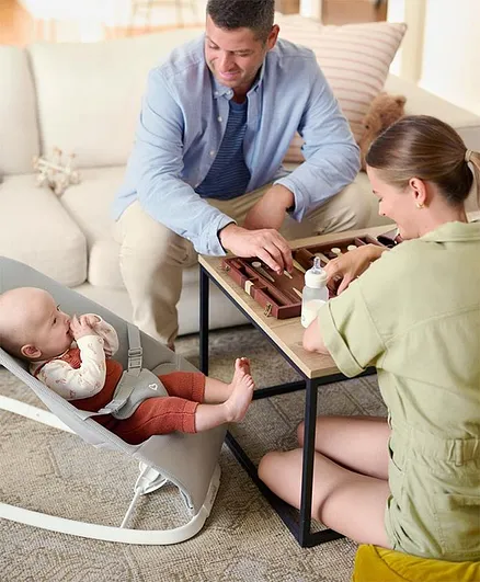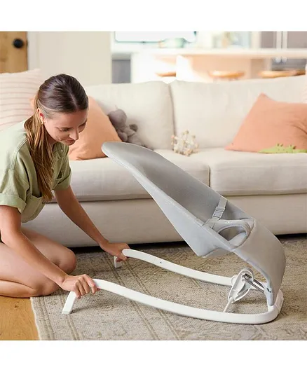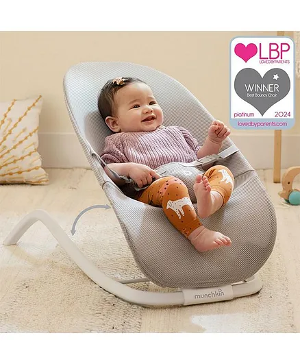 Say goodbye to bulky gear with the Munchkin Spring 2-in-1 Bouncer & Rocker in Grey—a lightweight (under 4 lbs) soother for 0 months+ that switches from bouncer to rocker mode by twisting base adjusters. With 3 recline positions and ergonomic mesh fabric for breathability and comfort, it keeps baby cool during UAE's warm days. Gentle bouncing/rocking motions soothe, and it folds flat for easy storage or travel. Machine-washable seat and no-tool assembly make it hassle-free. EN certified for safety, with a sturdy base for stability. Compact (approx. 24x20x25 inches), it's perfect for home or on-the-go. Ships in 2 days via YallaBuyIt.ae.