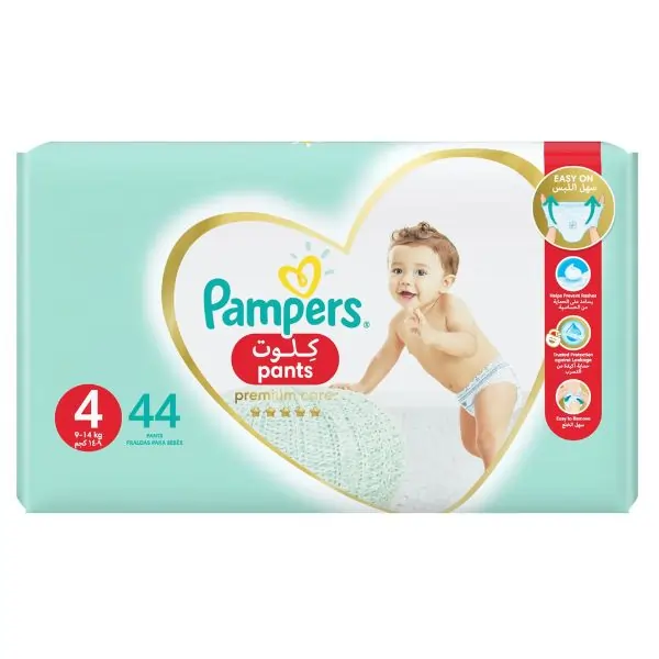 Give your baby premium comfort and reliable protection with Pampers Premium Care Pants Size 4. Designed for babies weighing 9–14 kg, these diaper pants provide a soft, underwear-like feel with powerful leak protection for day and night use. Featuring a 360° stretchy waistband, Pampers Premium Care Pants ensure a snug, comfortable fit that moves with your baby. The ultra-soft materials are gentle on sensitive skin, while the high-absorbency core locks away moisture to keep your little one dry and happy. Each carton includes 2 bags (2 BG/CTN), making it a convenient and cost-effective choice for everyday baby care.