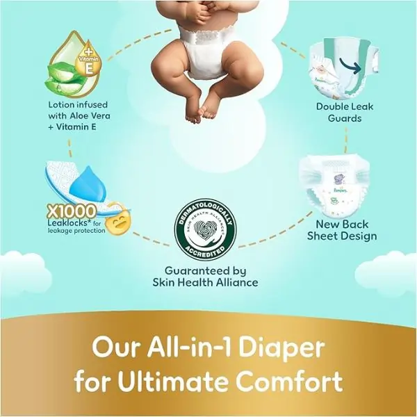 Keep your baby comfortable and protected with Pampers Ultimate Comfort Baby Diapers Size 4. Specially designed for babies weighing 9–14 kg, these diapers deliver premium softness and dependable leak protection for everyday use.Featuring a powerful leak-proof absorbent core, Pampers Ultimate Comfort locks away moisture to keep your baby dry for longer. The breathable, soft-touch layers are gentle on delicate skin, while the secure design ensures a snug and comfortable fit for active babies.Each carton contains 2 bags (2 BG/CTN), making it an ideal value pack for families who want comfort and performance in every diaper.