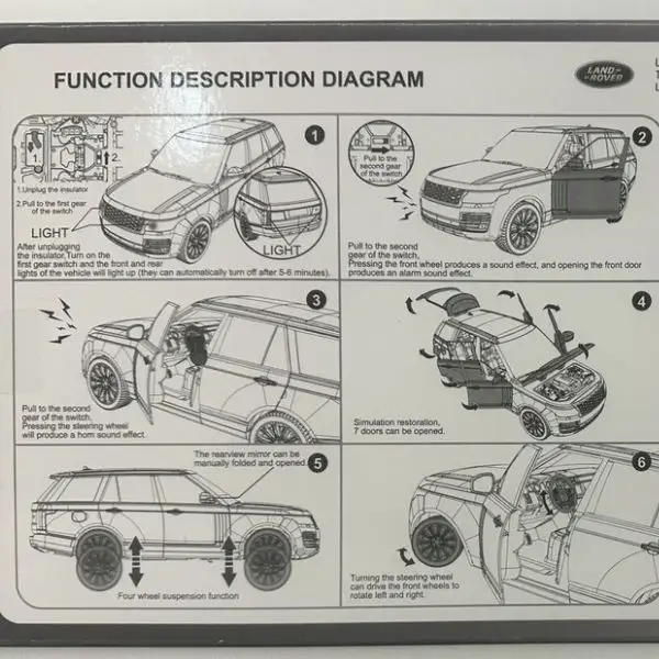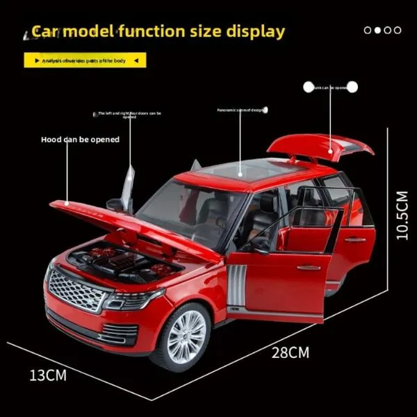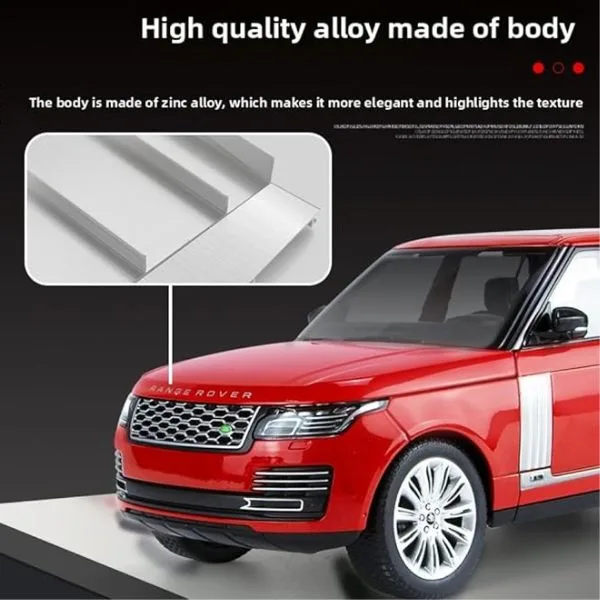 Land Rover Official Licensed 1:18 Range Rover 50th Anniversary Diecast Model Car (Red) — a bold and premium collector edition replica. Crafted with high-quality alloy metal construction, this 1:18 scale model perfectly captures the refined design and powerful presence of the 50th Anniversary Range Rover edition. The striking red finish enhances its sporty and premium appeal, making it an eye-catching addition to any collection. Featuring opening doors and built-in sound & light effects, this diecast SUV offers both interactive play and authentic display value. With detailed interior craftsmanship, realistic body lines, and smooth rolling wheels, it is ideal for collectors, enthusiasts, and as a premium gift for kids and adults.