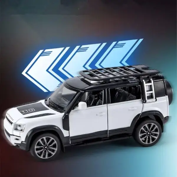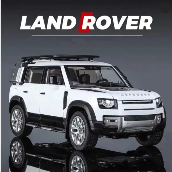 Land Rover Official Licensed 1:18 Defender 110 Diecast Model Car (White) is a premium alloy metal replica designed for collectors and off-road SUV enthusiasts. Built in a large 1:18 scale, this detailed model accurately captures the bold and rugged styling of the iconic Defender 110. The clean white finish highlights its modern design and strong off-road character, making it a standout display piece. Crafted from high-quality diecast metal, the model features opening doors and interactive sound & light effects for a realistic and engaging experience. With detailed interior finishing, precision body structure, and smooth rolling rubber tires, it offers both display value and light play enjoyment. Perfect for collectors, office display, gifting, or young SUV fans who admire legendary off-road vehicles.