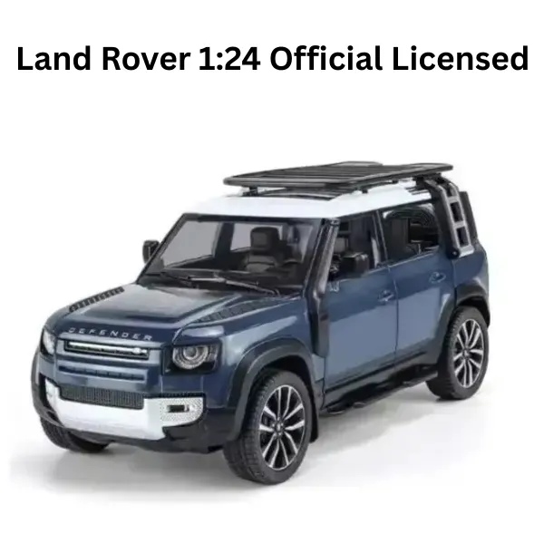 Land Rover Official Licensed 1:24 Defender 110 Diecast Model Car (Blue) is a premium alloy metal SUV replica designed for collectors and fans of iconic off-road vehicles. Crafted in a detailed 1:24 scale, this diecast model captures the bold styling and rugged character of the legendary Land Rover Defender 110. The striking blue finish adds a modern and stylish look, making it an eye-catching display piece for collectors and car enthusiasts. Built with durable alloy metal construction, the model features opening doors and built-in sound & light effects, creating a realistic and engaging experience. Detailed interior craftsmanship, precise body design, and smooth rolling rubber tires bring authenticity to this collectible SUV model. Perfect for collectors, display shelves, office décor, or as a premium gift for kids and adults who admire legendary off-road vehicles.