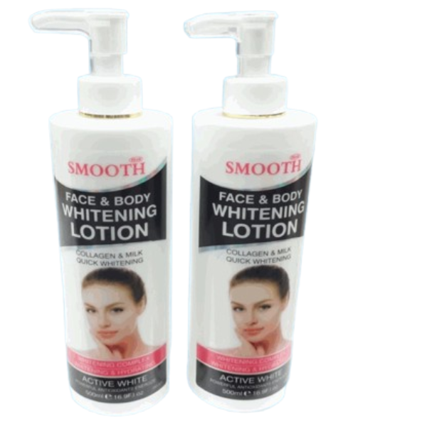 Enhance your skin’s radiance with SMOOTH Whitening Body Lotion Double Pack. This nourishing body lotion is formulated to moisturize deeply, reduce dark spots, and even out skin tone for a brighter, smoother appearance. Perfect for daily use, the 500ml + 500ml double pack ensures long-lasting skin care for all skin types.