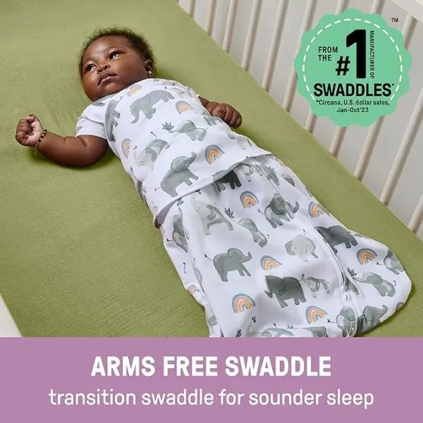 The Ingenuity SwaddleMe Arms Free Convertible Swaddle – Happy Elephant provides a safe, cozy sleep solution for babies aged 3–6 months. Made with soft, breathable fabric, it allows arms-free comfort while helping reduce the startle reflex. Adjustable to fit growing babies, easy to use, and machine washable, this swaddle is perfect for keeping your little one comfortable and secure during sleep.