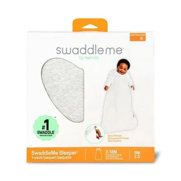 The Ingenuity SwaddleMe Night Sack Sleeper – Heather Grey is a wearable blanket designed for babies aged 3 to 18 months, providing a safe and comfortable sleep environment. With a 2.5 TOG rating, it offers the right warmth for cooler nights while allowing freedom of movement. Made from soft, breathable fabric, this night sack keeps your baby cozy, secure, and reduces the risk of loose blankets in the crib.