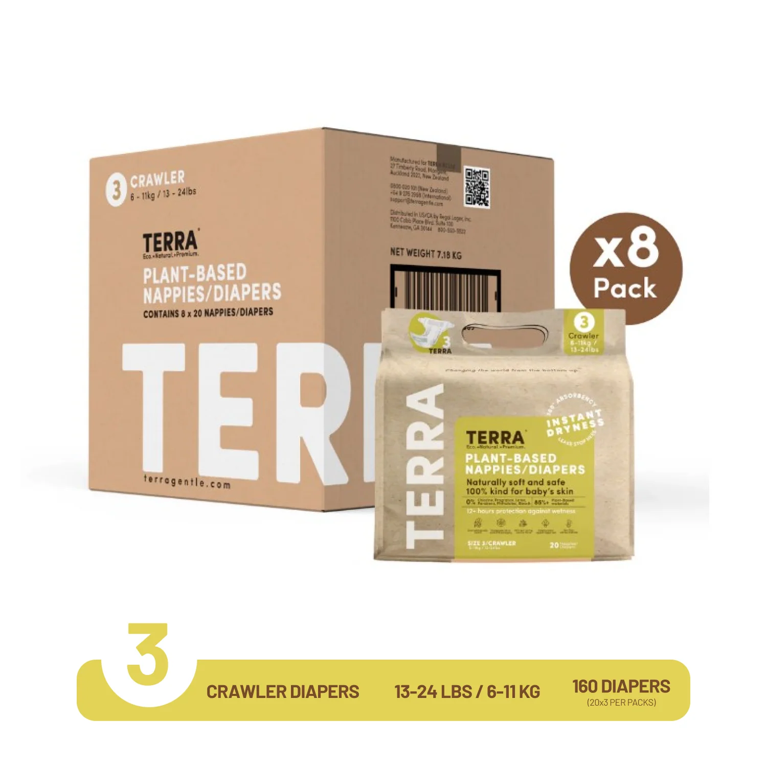 Terra Tape Style Eco Premium Diaper Crawler Size 3 / Value Pack- 160pc