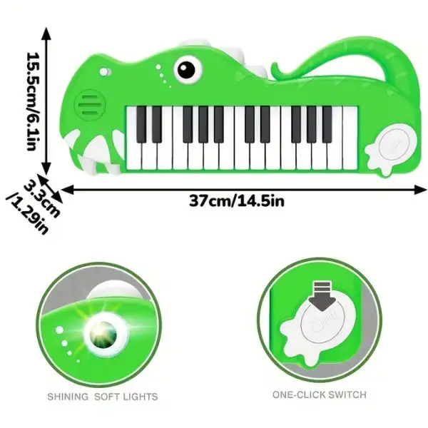 The LiJIA Kids Electronic Keyboard Piano is a fun and educational dinosaur-themed musical toy designed to introduce toddlers to the world of music. Featuring engaging sound effects and built-in melodies, this portable keyboard helps develop rhythm, creativity, and early learning skills. The colorful dinosaur design captures children’s attention, while the easy-to-press keys make it suitable for little hands. Perfect for home playtime, this musical toy encourages hand-eye coordination and auditory development in an enjoyable way. Lightweight and portable, it is ideal for indoor play, travel, and early music exploration.