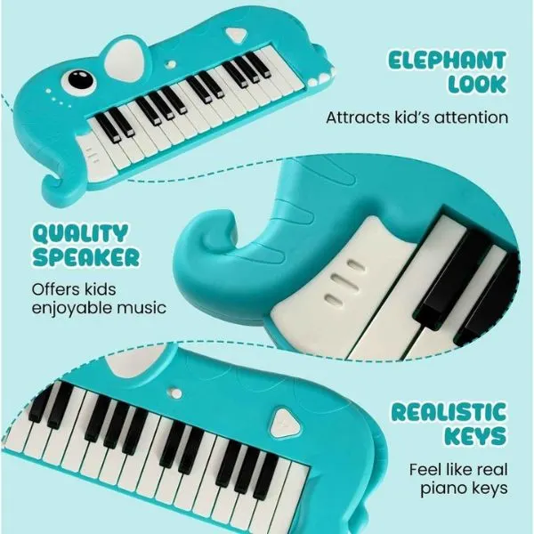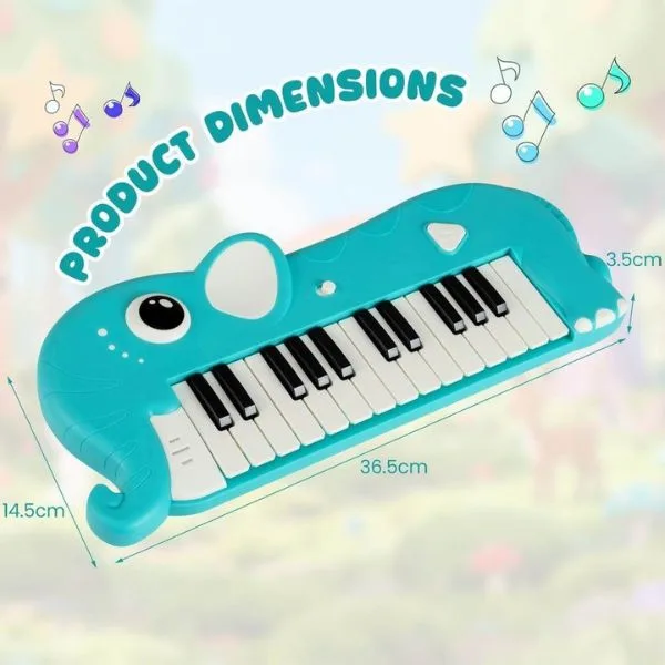 The LiJIA Elephant Piano Keyboard for Kids is a fun and engaging electronic musical toy designed to introduce toddlers to music and early learning. Featuring a cute elephant design, this keyboard includes built-in lights, sound effects, and melodies to keep children entertained while encouraging creativity. The easy-to-press keys are perfect for little hands, helping develop hand-eye coordination and rhythm skills. The colorful lights enhance sensory stimulation, making playtime more interactive and exciting. Lightweight and portable, this educational musical toy is ideal for home use, playrooms, and gifting occasions.