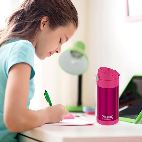 Stay hydrated on the go with the Thermos Funtainer Kids Water Bottle 355ml—a vacuum-insulated stainless steel bottle with straw lid that keeps drinks cold for 12 hours, for 6 months+. The push-button pop-up straw and flip-up carry loop make it kid-friendly and leak-proof. BPA-free and durable, it's perfect for UAE school or playdates. Dishwasher-safe and lightweight (~0.3 kg). EN certified for safety. Ships in 2 days via YallaBuyIt.ae. Key Specifications: