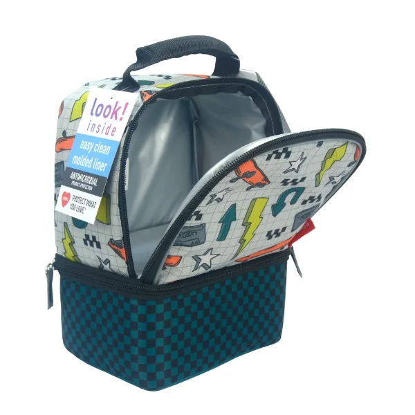 Pack lunches with ease using the Thermos Skater Dual Compartment Lunch Bag—a spacious insulated bag with Flex-A-Guard liner for leak-proof, easy-clean protection, sized at 24.5cm height. Premium closed-cell foam insulation keeps food fresh, while the dual compartments with zipper closures organize meals separately. PVC-free with PEVA lining, it features durable handles for carrying and a front pocket for utensils. Ideal for school or UAE outings. EN certified for safety, it's lightweight and compact. Ships in 2 days via YallaBuyIt.ae. Key Specifications: