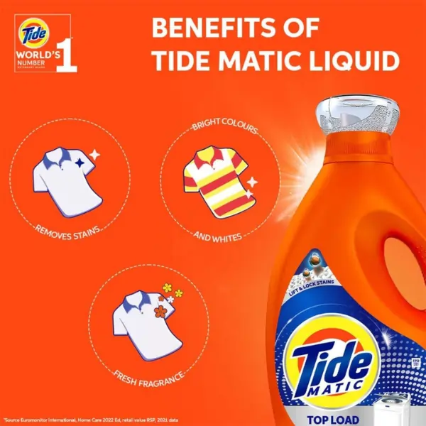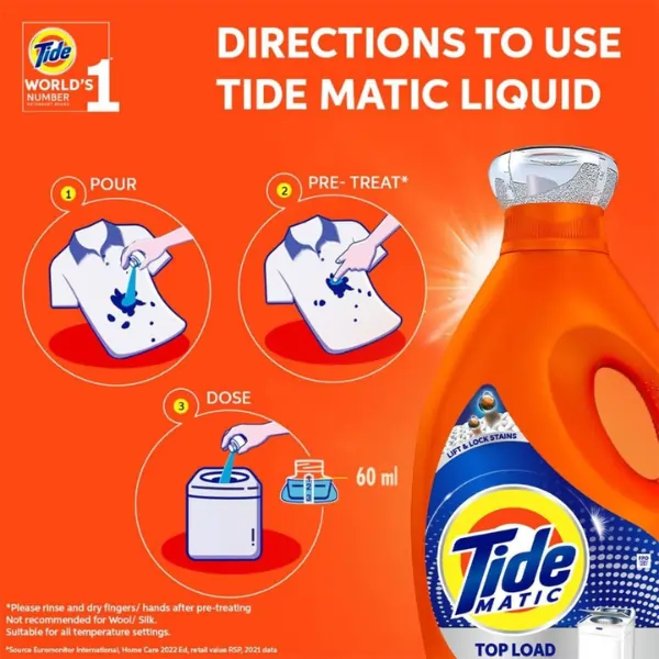 Get superior cleaning results with Tide Matic Liquid Detergent 850ML – Top Load, a powerful laundry solution formulated specifically for top-load washing machines. This advanced liquid detergent dissolves quickly, penetrates deep into fabrics, and removes tough stains while keeping clothes bright and fresh.