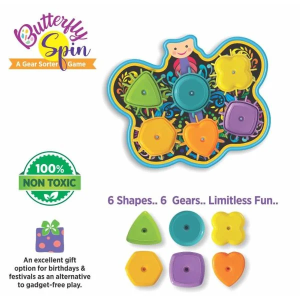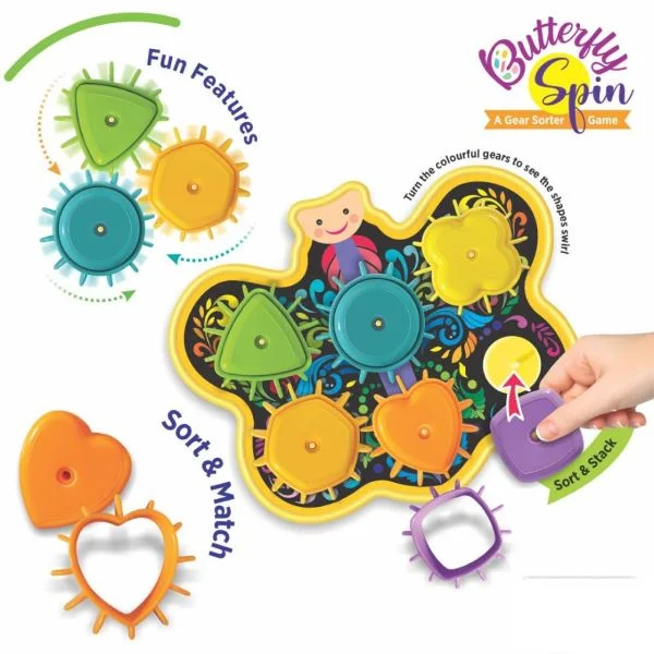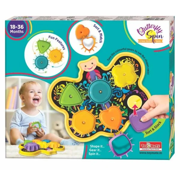 Encourage early learning through play with the Toymate Butterfly Spin Gear Sorter Game. Designed for toddlers aged 18–36 months, this interactive toy features six bright shapes and spinning gears that engage little hands and curious minds.