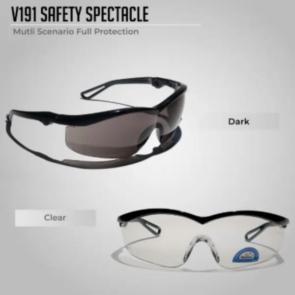 AL ARQAM V191 Safety Spectacles, designed for reliable everyday use in industrial environments, construction sites, workshops, and laboratories. The Dark lens supports natural visibility, while the anti-fog coating helps reduce fogging during active work and long shifts. A practical safety eyewear choice for professionals who need comfort, clarity, and dependable protection on the job.