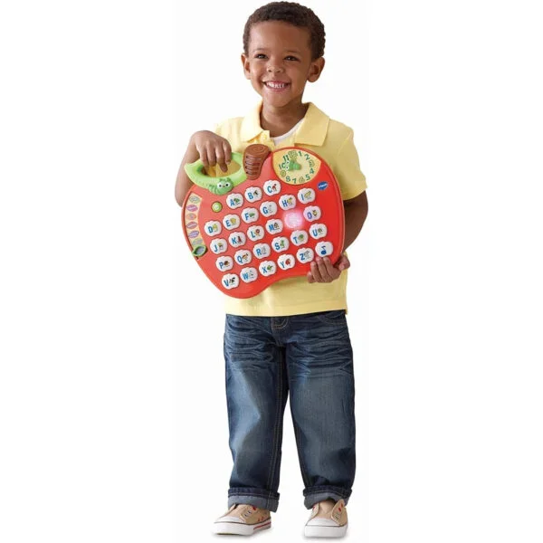 An apple a day keeps the learning away with the VTech ABC Learning Apple in Red—an interactive toy for 2-5 years+ featuring 26 easy-to-press letter buttons that teach alphabet sequence, phonics sounds, letter names, spelling, and 15+ melodies. With 7 play modes (e.g., quizzes, memory games) and a cute worm friend, it builds skills in letters, words, time, and music. Parent-friendly volume control and automatic shut-off save batteries. EN certified for safety, requires 2 AA batteries (not included). Compact for UAE playtime or travel. Ships in 2 days via YallaBuyIt.ae. Key Specifications: