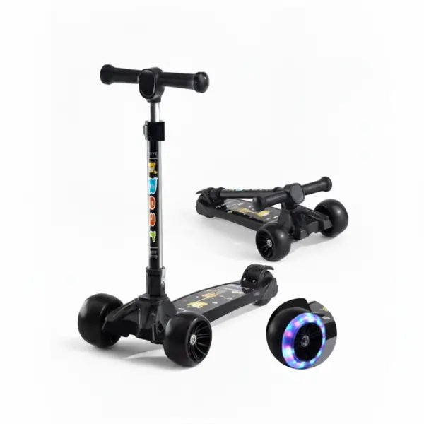 AL ARQAM Light-Up PU Wheels Scooter for Kids – 3-Wheel Stable Ride, Adjustable Handlebar & Sturdy Iron Frame – Black